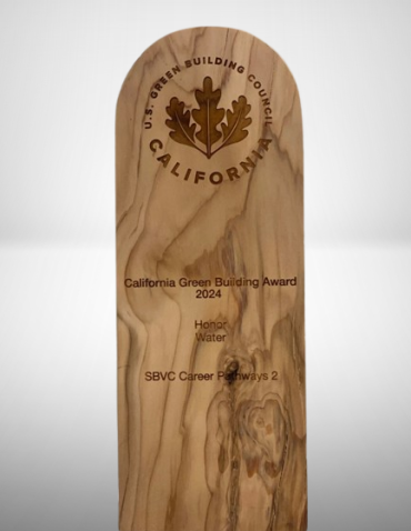 The Green Building Award of Honor recognizes SBVC’s Career Pathways 2 project for excellence in water conservation and resource stewardship. This distinction highlights the District’s leadership in addressing California’s critical water challenges through sustainable campus development.